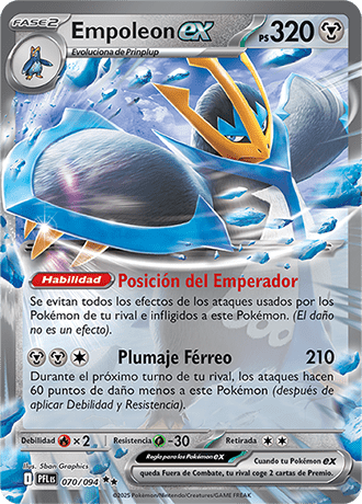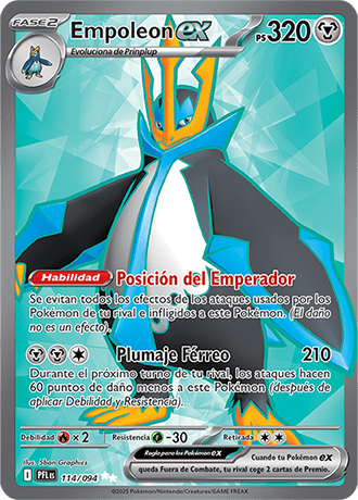 - Empoleon ex: una carta sólida de tipo metal que fortalece la línea de Piplup convirtiéndose en un tanque bastante resistente.